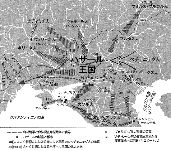 「ロシアは、ロシア・キエフ公国に起源を求め、それ以前にハザール王国という文明国の影響を受けたことを認めたがらない。〈中略〉このハザールは世界史で果たした大きな役割にもかかわらず、ほとんど知られてこなかった。ビザンチンと同盟して、ペルシャやイスラム・アラブ軍の北進を妨げたのである。ハザールがなかったら、ヨーロッパはイスラム化され、ロシアもアメリカもイスラム国家になっていた可能性が高いという学者も多い」