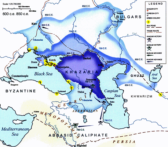遊牧民帝国があった。9世紀ごろ支配階級がユダヤ教に改宗、ユダヤ人以外のユダヤ帝国