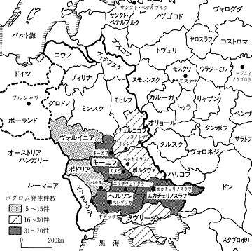 反ユダヤ主義とポグロムとは、1648年のフメリニツキーの乱と1734年のハイダマキの暴動に始まり、1880年代、1905~6年、1918~21年のロシア内戦、1939~41年の西ウクライナにおけるユダヤ人攻撃、それにウクライナ人のナチスに対する大規模な協力にいたるまで続いた」