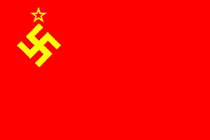 (左)アドルフ・ヒトラー (右)ナチス・ドイツの旗